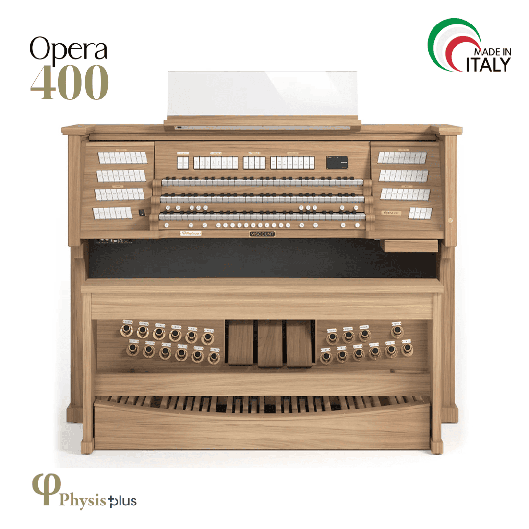 Opera 400 là cây đàn organ kỹ thuật số ba bàn phím với thiết kế sang trọng, vỏ gỗ veneer tinh xảo và công nghệ mô phỏng âm thanh Physis® Plus tiên tiến do Viscount phát triển. Được trang bị đầy đủ các bộ ống âm mới, cùng khả năng tùy chỉnh âm sắc chuyên sâu, Opera 400 là lựa chọn lý tưởng cho nhà thờ, không gian biểu diễn lớn hoặc các nghệ sĩ chuyên nghiệp đang tìm kiếm một trải nghiệm organ chân thực và mạnh mẽ.