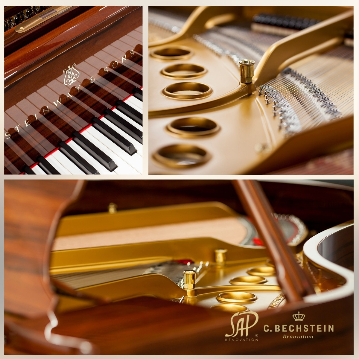 Phục chế cây đàn piano Steinway & Sons Renovation bao gồm các công đoạn để bảo đảm cả thẩm mỹ và âm thanh đặc trưng của Steinway & Sons.