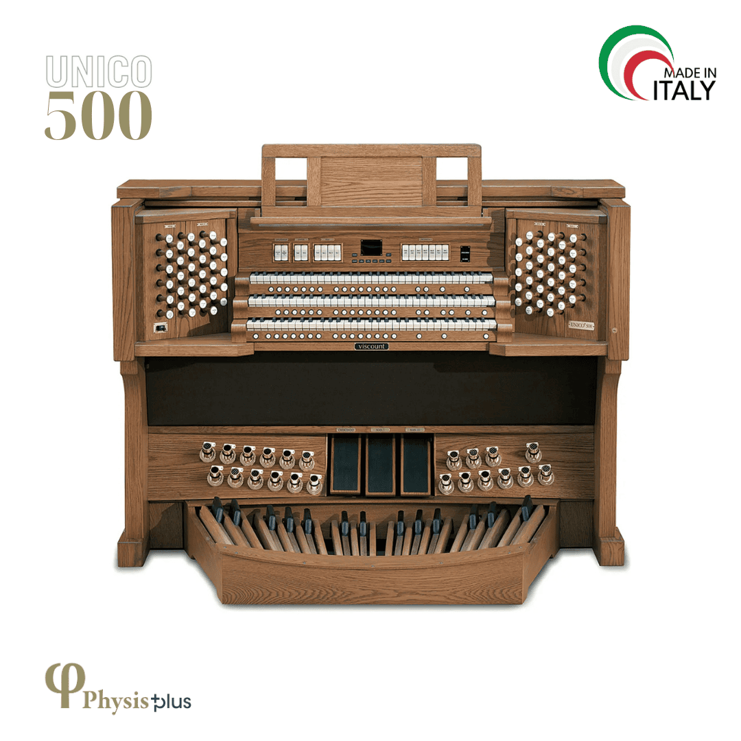 Unico 500 là cây đàn organ kỹ thuật số cao cấp sở hữu hệ tiếng pipe organ được mô phỏng bằng công nghệ Physis® Physical Modeling độc quyền của Viscount, mang đến âm thanh sống động, trung thực như đàn ống truyền thống. Với thiết kế console gỗ veneer sang trọng, 3 bàn phím chuẩn "Tracker Touch" và khả năng tùy chỉnh sâu sắc từng stop, cây đàn này được phát triển để đáp ứng cả những yêu cầu khắt khe nhất từ các nghệ sĩ organ chuyên nghiệp tại nhà thờ hoặc sân khấu biểu diễn.