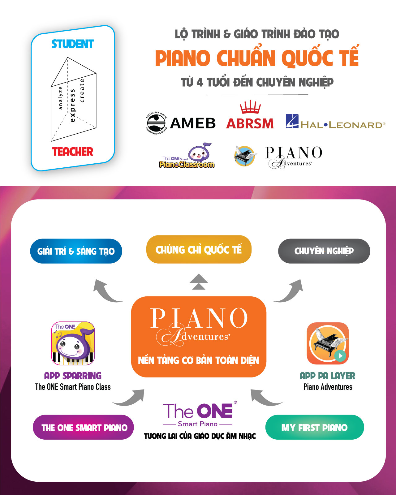 Lớp học Piano Thông Minh The ONE được thiết kế đặc biệt cho trẻ từ 4 tuổi, với phương châm "Học mà chơi, chơi mà học".