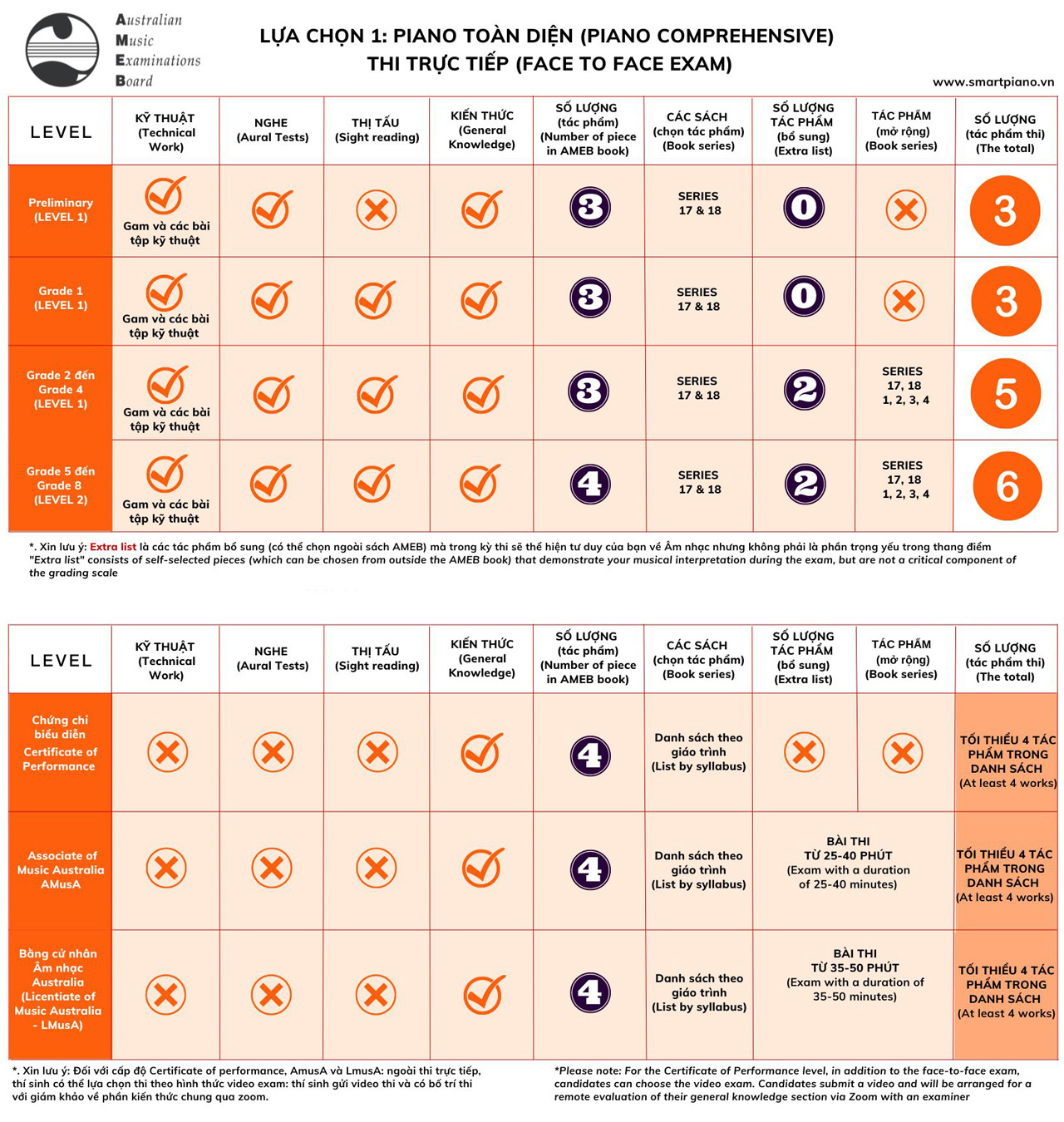 - Tùy Chọn Linh Hoạt: Kỳ thi và trao chứng chỉ của AMEB được tổ chức hàng năm, cho phép thí sinh tham gia trực tiếp hoặc trực tuyến (đối với thí sinh ở xa). Các thí sinh đạt kết quả cao có cơ hội biểu diễn tại các festival âm nhạc tại Việt Nam và Australia.