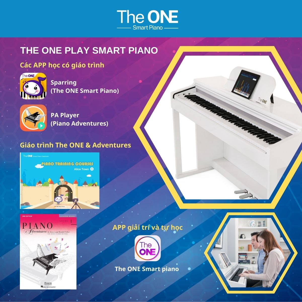 Đàn piano thông minh The ONE trangbị kết nối chức năng thông minh từ các app để cung cấp giải pháp dạy & học piano trong vai trò là một "TRỢ GIẢNG ẢO" để tạo hứng thú khi ôn luyện và tự tập mà không bị sai.